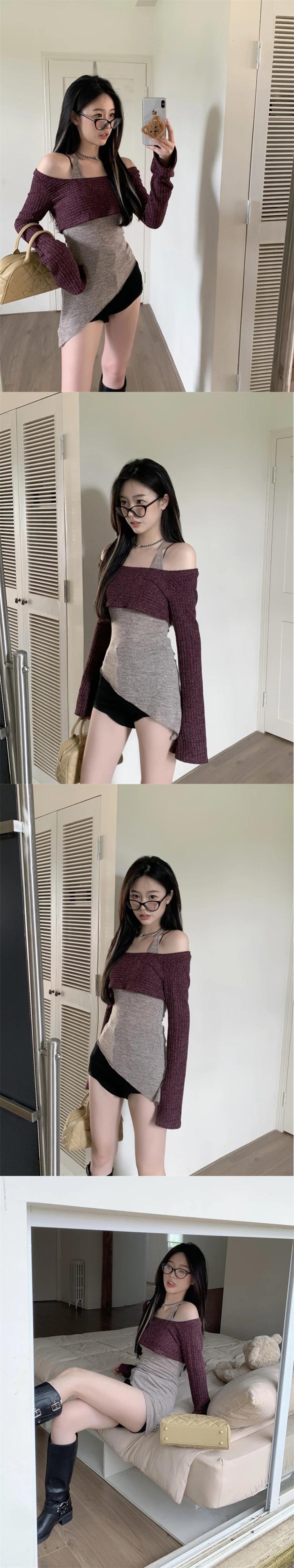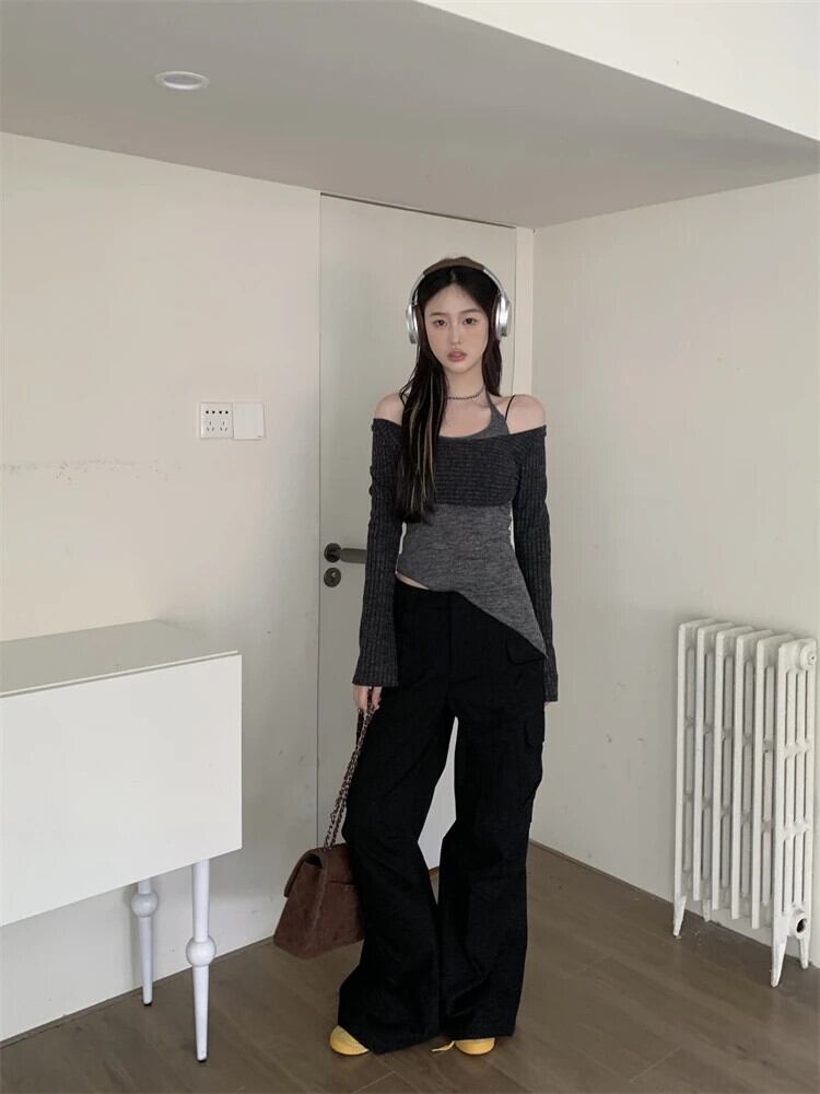 タンクキャミソールトップスホルター美的 Ropa オフショルダー長袖 Tシャツ Y2k 原宿グランジ Tシャツ 2 セット Tシャツ ロング かわいい