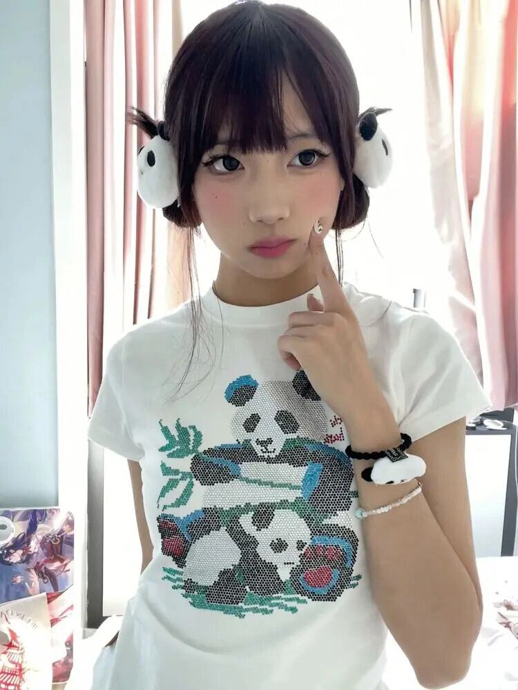 美的 Y2k トップ綿スリムフィットパンダダイヤモンド半袖 Tシャツクロップトップグランジグラフィック Tシャツ ショート コットン ハーフスリーブ