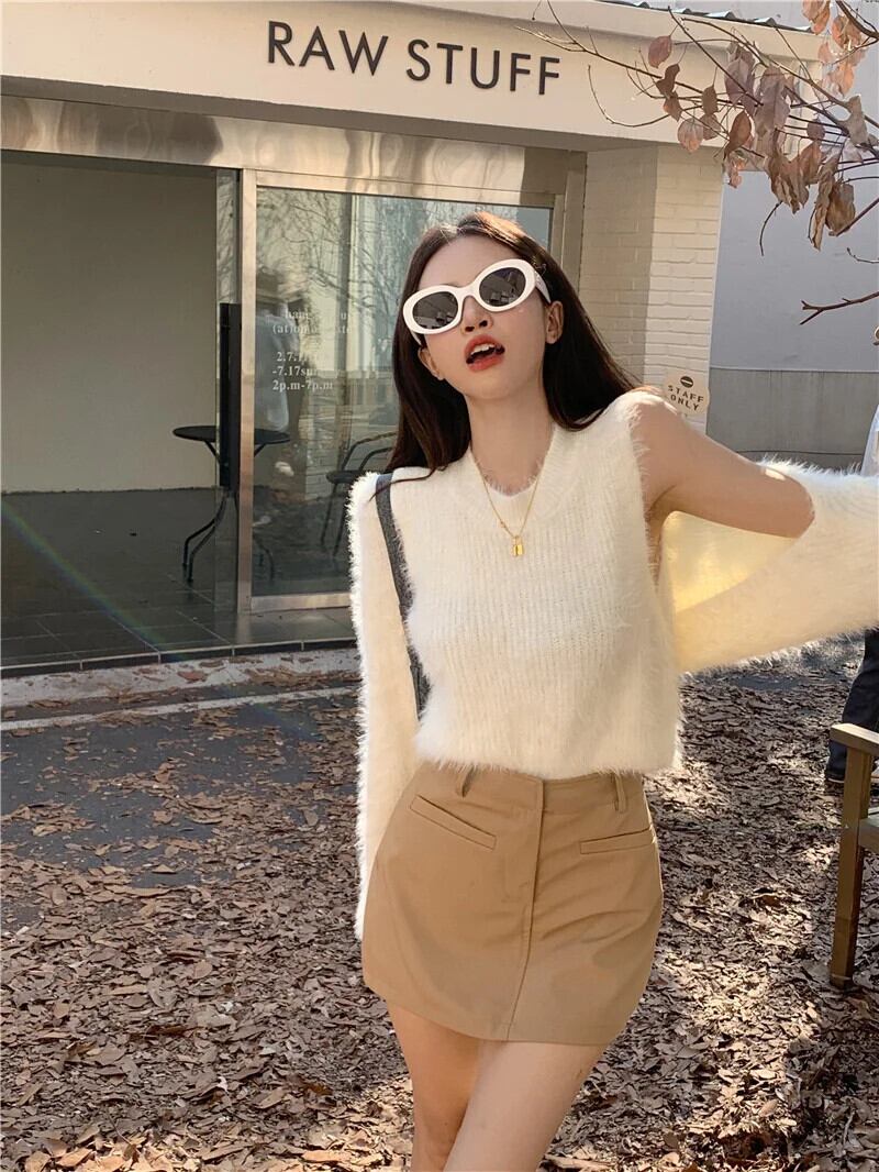 ミンクカシミヤグランジ2枚セットY2kカーディガンコートふわふわプルオーバーセーター秋クロップドトップ オータム 秋物