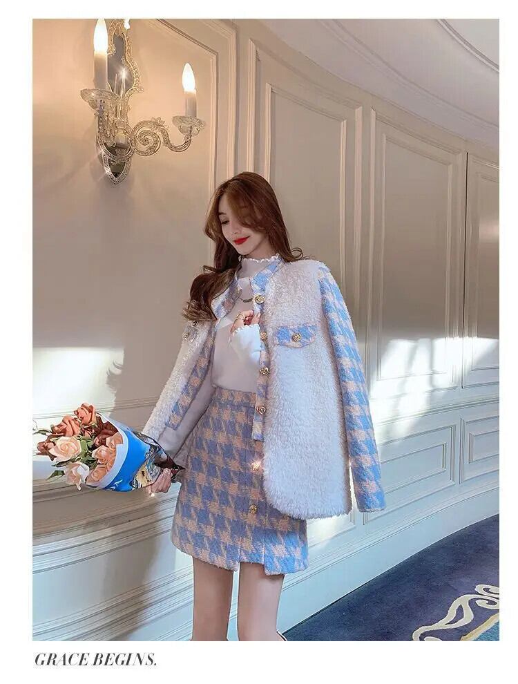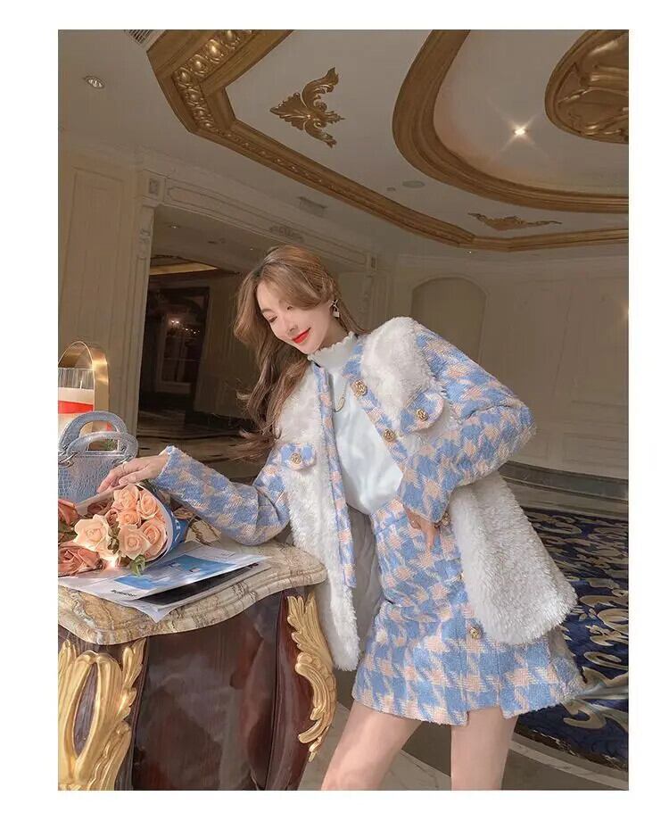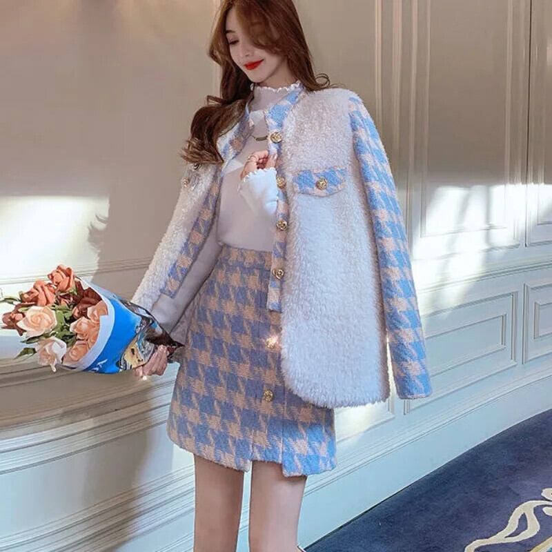 キルティング コート テーラード コート ウール & ブレンド 千鳥格子ジャケット トップ ウエストラップ ヒップ スカート セット チェック柄スカート レッド
