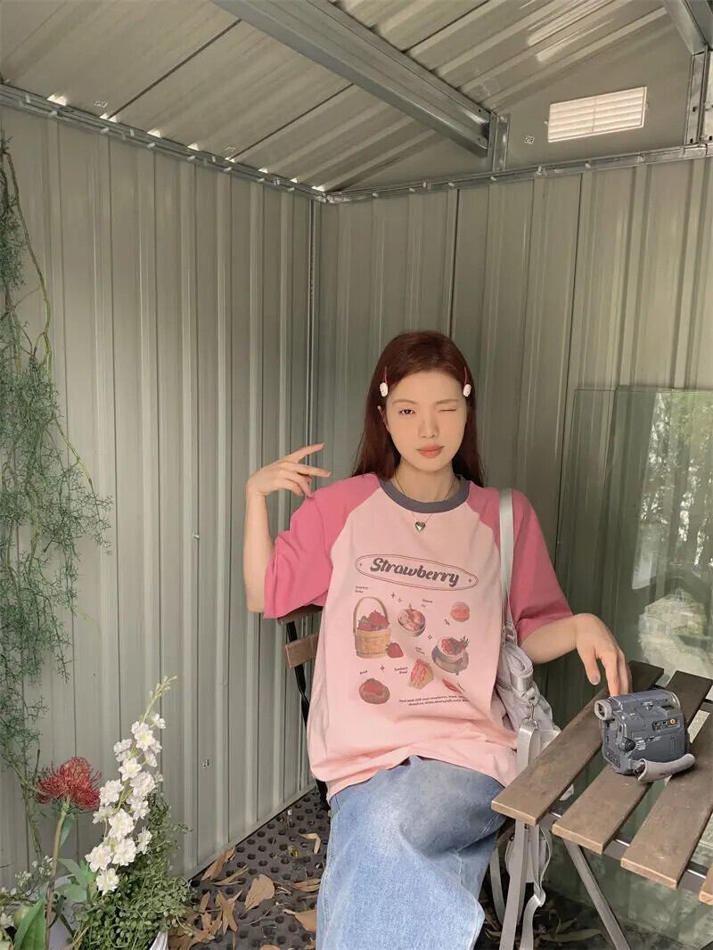 Tシャツ レディース パネル ルーズ スタイル O ネック スイート イン オルシンプル オールマッチ シック トップ 大人ガーリー スウィート キュート カジュアル Oネック