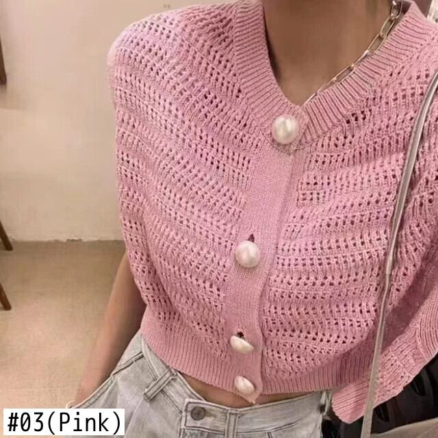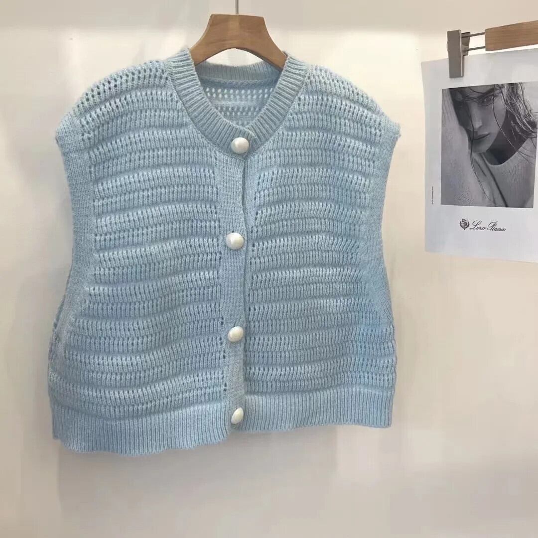 シック夏甘いキャンディーカラーラウンドネックシックパールボタンジャカードノースリーブベストニットセータートップ Y2k 大人ガーリー スウィート キュート カジュアル サマー 夏物 Oネック 真珠