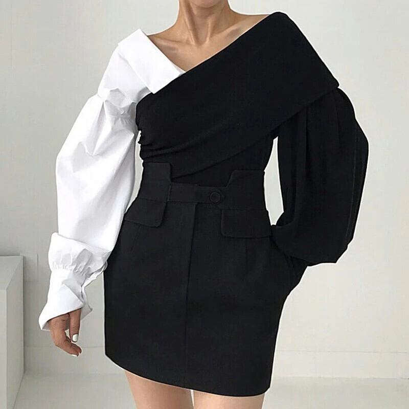 グランジ Y2k グラフィック T シャツ V ネックオフショルダーコントラストバブルスリーブニットトップ偽 2 セーターセーター Vネック Tシャツ