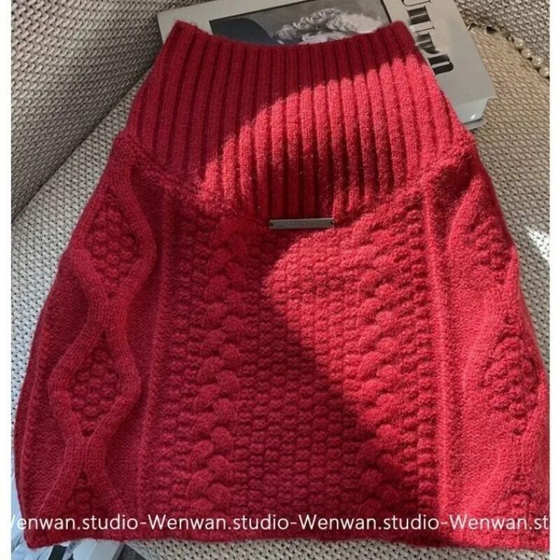 クリスマスレッドセーターニットカーディガンニットツイストコートトップツーピースセットショートスカートスリムスカート