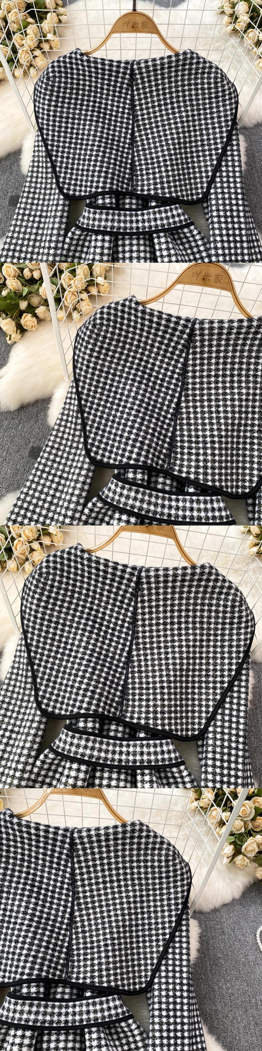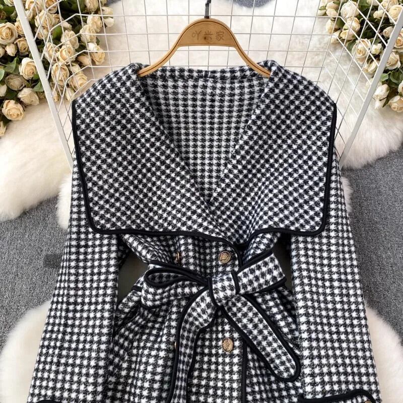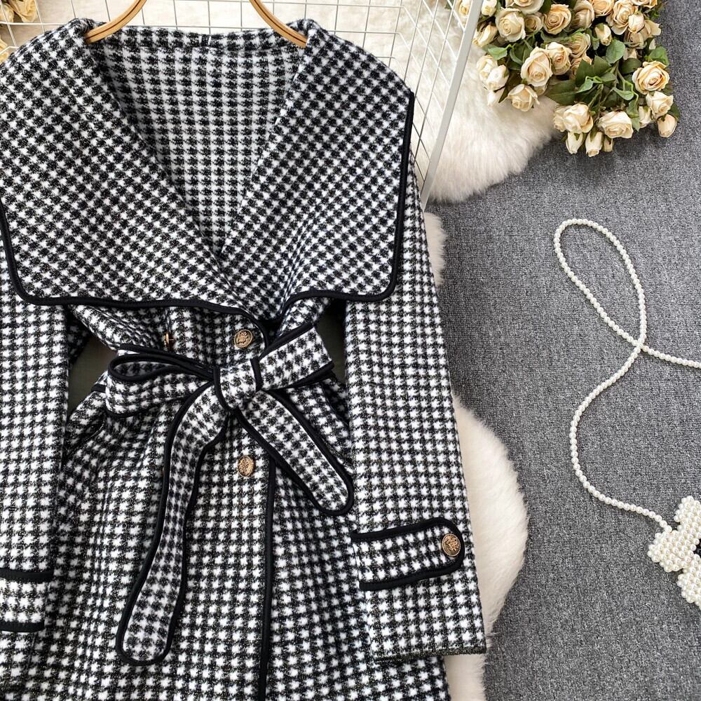 千鳥格子秋冬ウールコートストリート暖かいチュニックトレンチコート冬コートコートやジャケット オータム 秋物 ウィンター 冬物