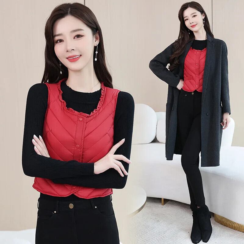冬ベストオーバーサイズ厚み綿パッド入りジャケット秋スリム防風暖かいノースリーブチョッキ白パーカートップス ホワイト コットン オータム 秋物 ウィンター 冬物