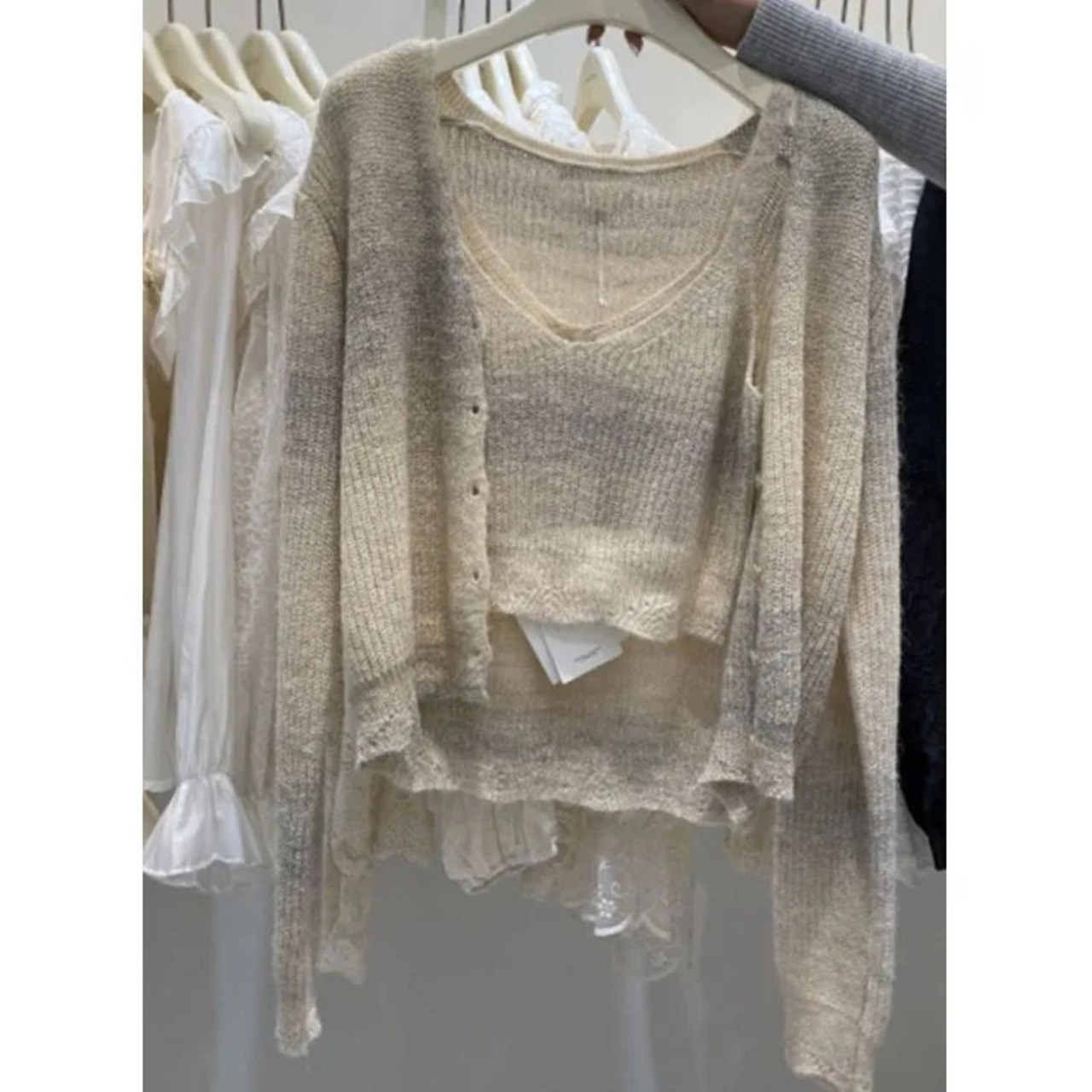 セーターセットスタイルシックレインボーグラデーションストライプスパゲッティストラップベスト V ネックニットカーディガン 2 枚 Vネック