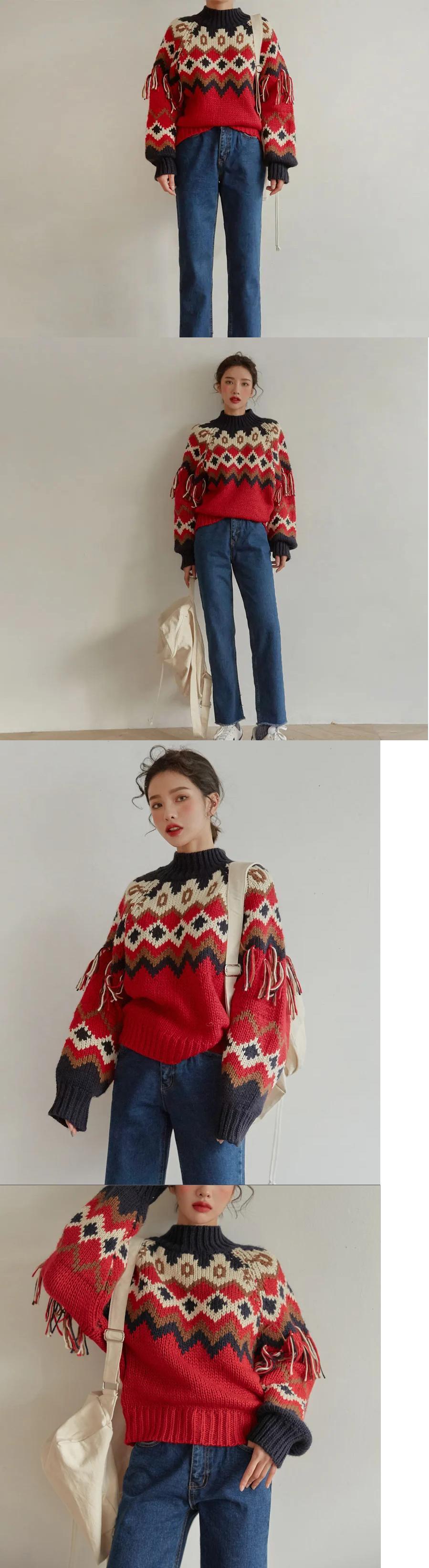 長袖暖かいクリスマスセーター赤ジャカードニットセーター Tle ジャンパープルオーバートップスセーター ロング レッド