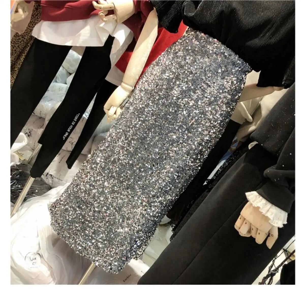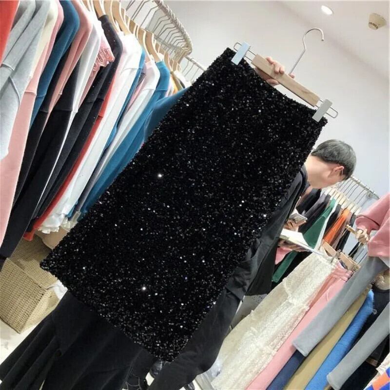 スカート秋ウエストミディスパンコールバックスリット A ラインルーズシンプルオールマッチ Faldas Largas オータム 秋物 Aライン