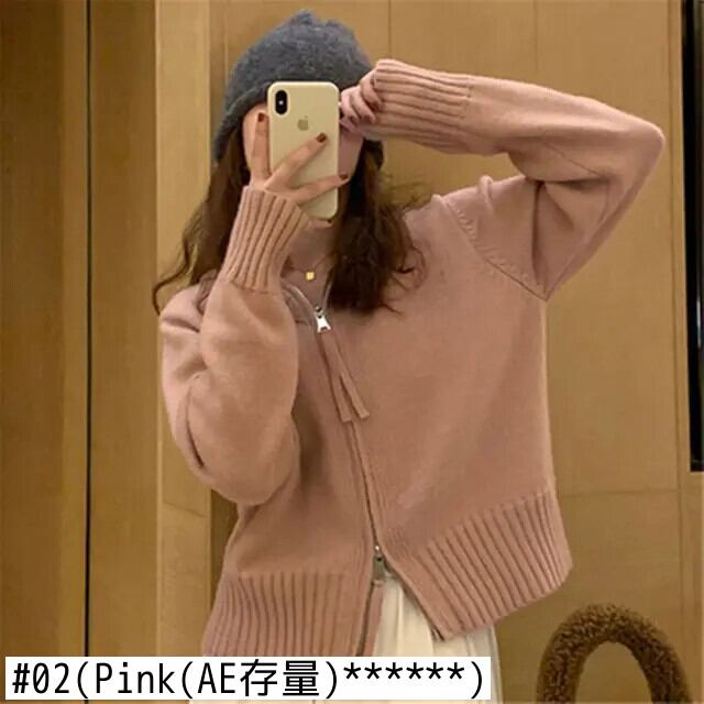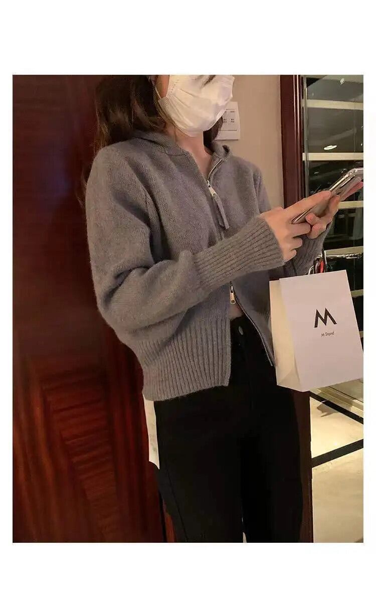 カーディガンニット秋フード付きジッパーシック学生ベーシック原宿レジャーシンプル日常 かわいい オータム 秋物 ソリッドカラー