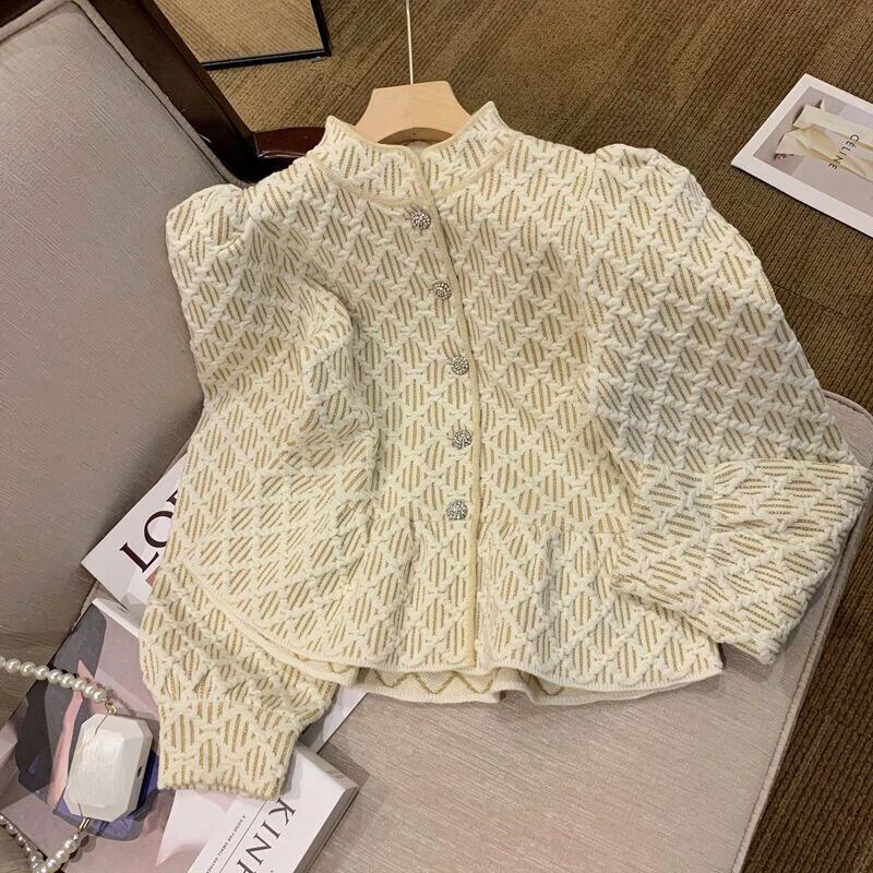 ニット 2 点セットスタンドカラークロップトップジャカードダイヤモンドチェック柄シャツ刺繍スカート A ライン Y2k レッド Aライン