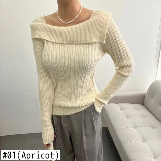 底無地グレーニットオフショルダープルオーバーセーターセクシーフルスリーブスリムストレッチニットジャンパートップス ソリッドカラー