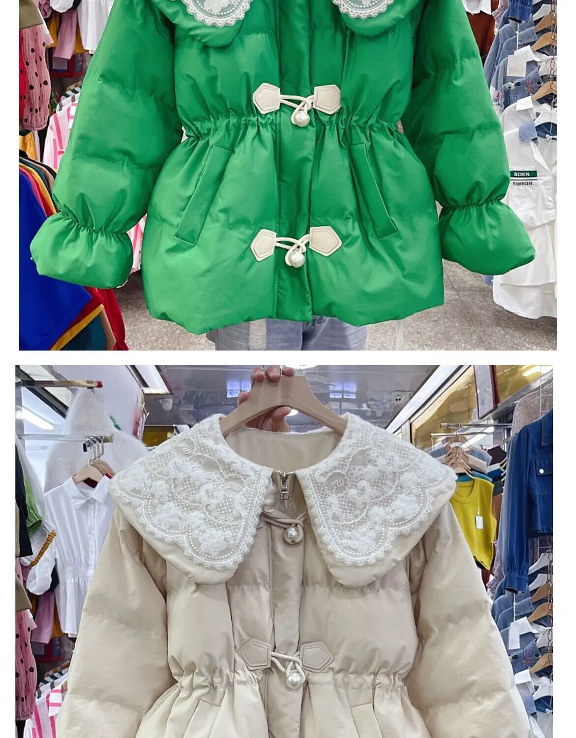 巾着肥厚コットンジャケットショートレース人形襟ターンダウンスリムパールAライン甘い上着冬パーカー 大人ガーリー スウィート キュート カジュアル ウィンター 冬物 真珠