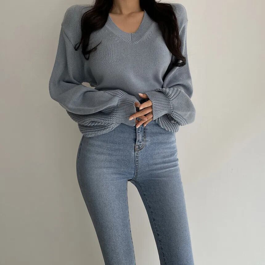 ショートプルオーバーセーターストリートニットセーター長袖クロス不規則 Y2K トップスランタン ロング ソリッドカラー