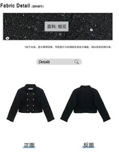 Chaqueta スリムショートホワイトツイードコート長袖カーディガンジャケットフレアスリーブネックフリル ロング