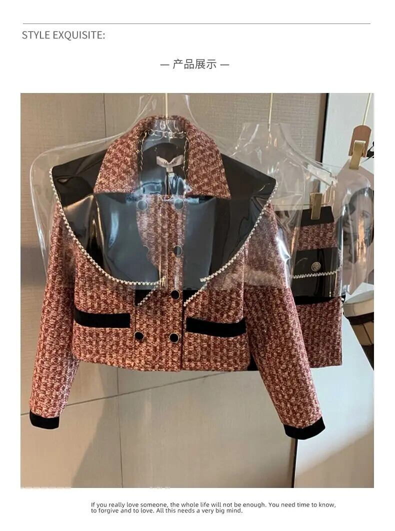 香りよい赤クリスマスセットショートツイードジャケットネイビーカラートップミニスカートレディース 2 ピースセット秋スーツ レッド オータム 秋物