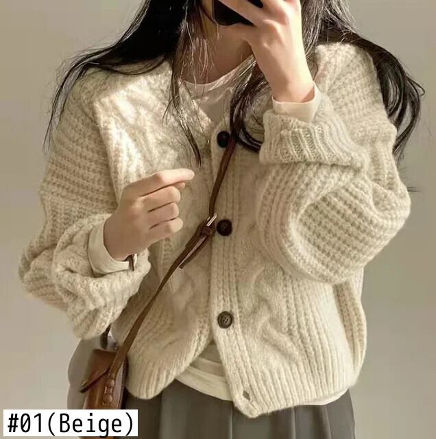 ピンク厚いカーディガンニットセーター秋シックルーズ長袖トップスシンプルセータージャケット ロング オータム 秋物 ソリッドカラー