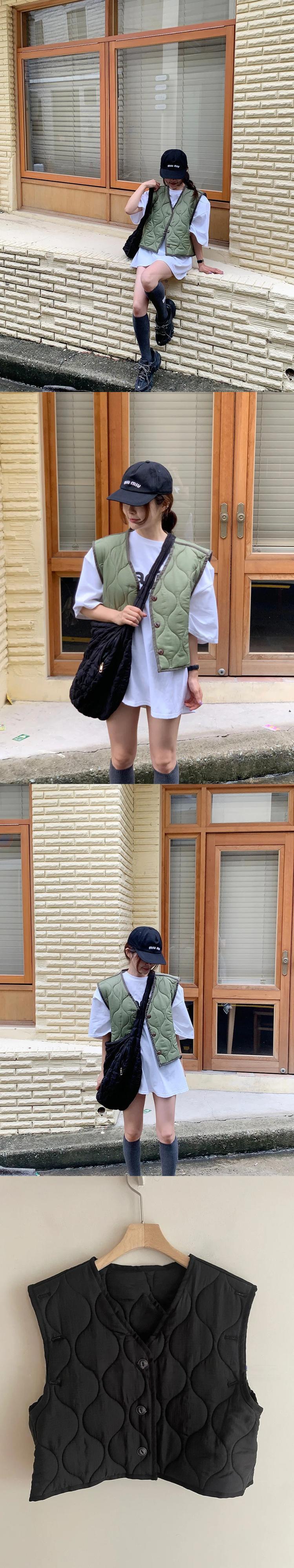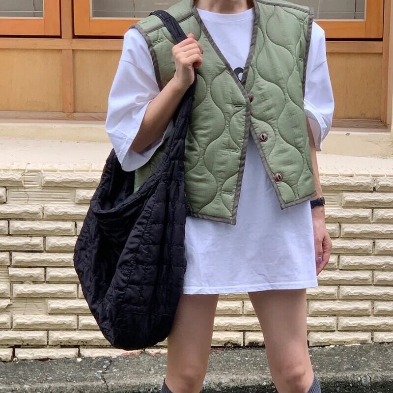 黒軽量ダウン綿入りベストルーズ V ネックベスト暖かいインナーノースリーブチョッキトップコート ブラック コットン Vネック