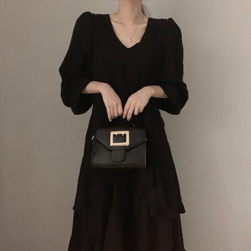シック気質スリムフィットウエストホワイトキャミクロップトップ V ネック不規則ベルスリーブドレスロングドレスシフォンラップ Vネック