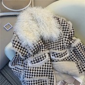 秋冬肥厚毛皮コート小さ香りスタイル千鳥チェック柄ラムウールジャケット原宿パーカートップスレトロ かわいい オータム 秋物 ウィンター 冬物