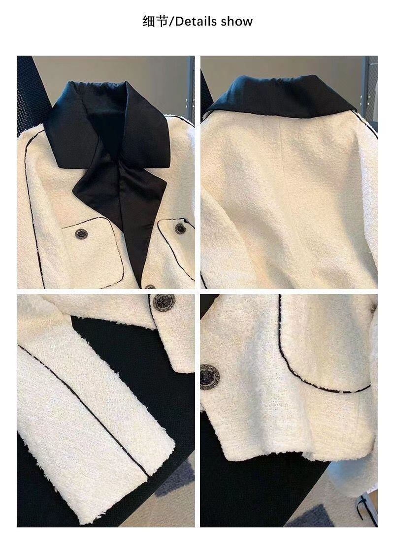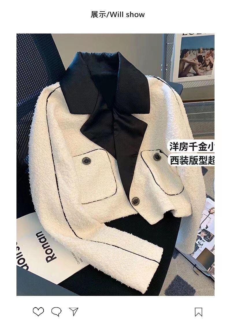 気質スーツ襟厚いツイードショートコート Roupas s スリムクロップジャケット原宿 Chaquetas かわいい