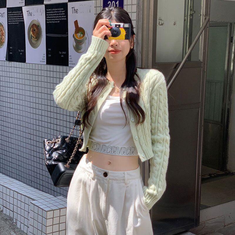 クロップドカーディガンニット 5 色アメリカンスタイル春居心地良いオールマッチスリムホットウィートストリート スプリング 春物