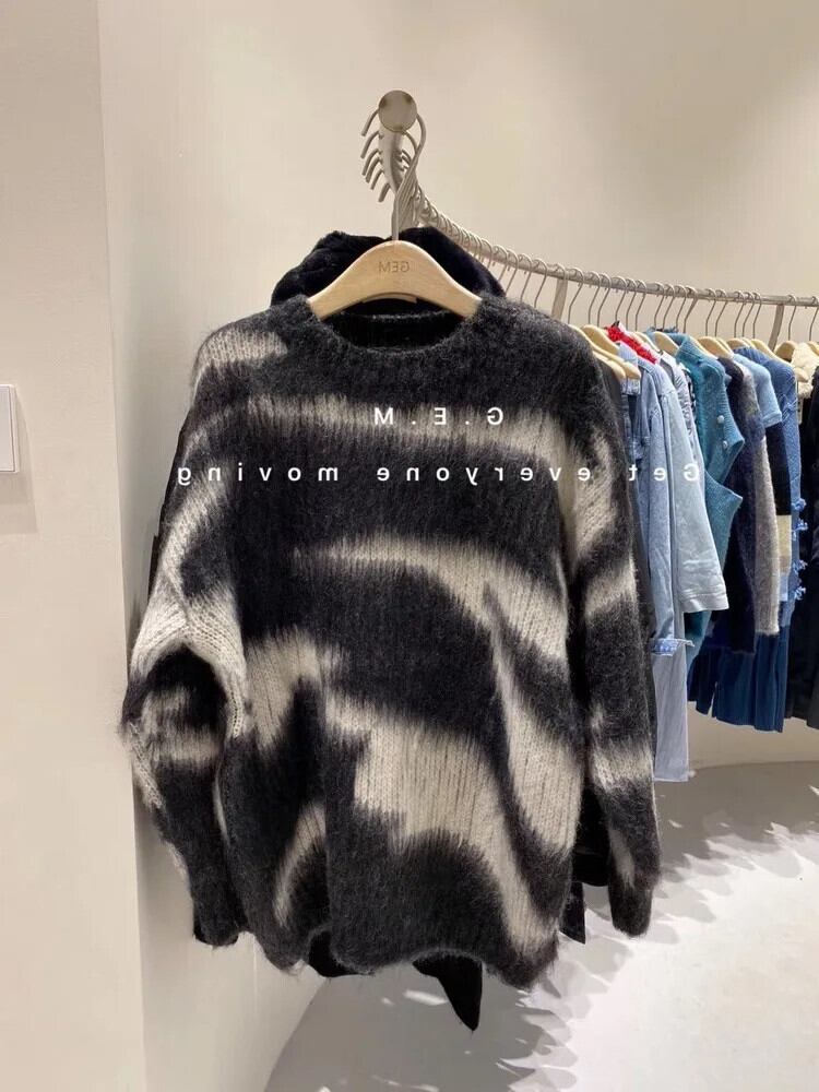 グラデーションモヘアプルオーバールーズニットトップセーターコントラストストライプセーター Y2k フェアリーコア美学グランジ