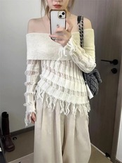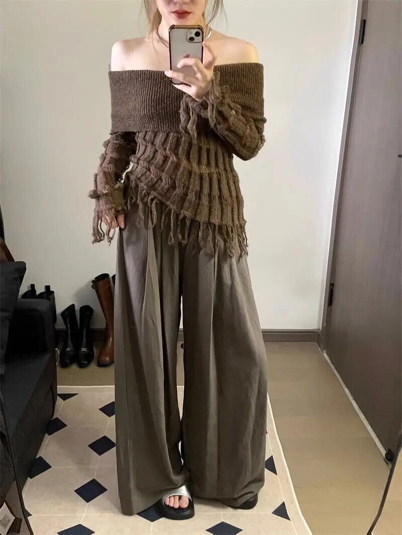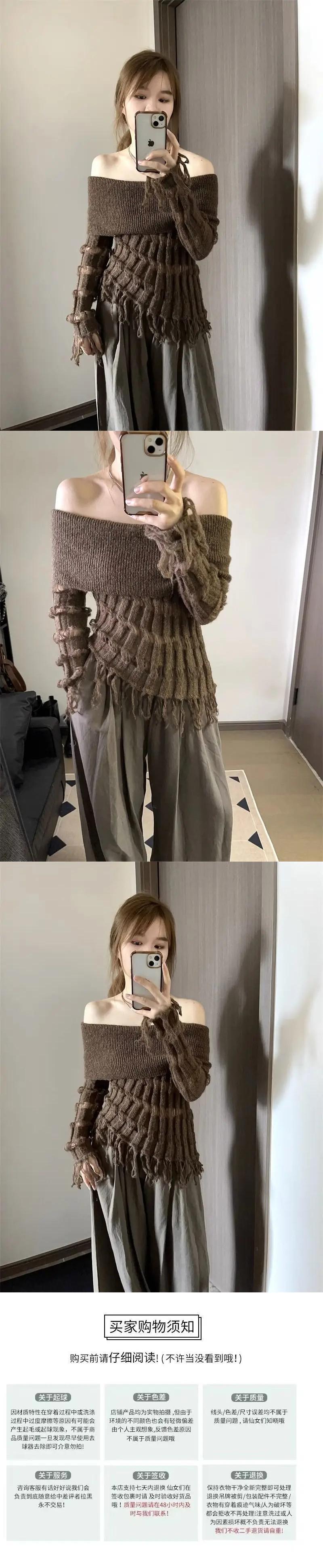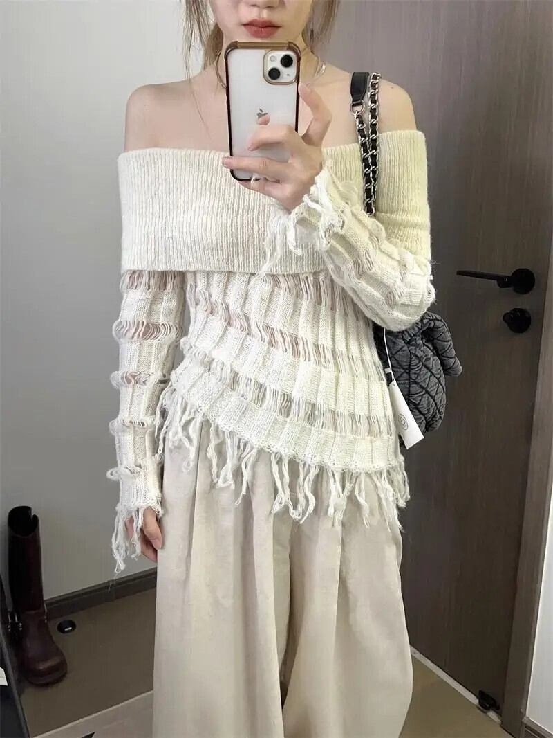 プルグランジプルオーバーオフショルダーニットセーターレディース不規則テルトップセーター