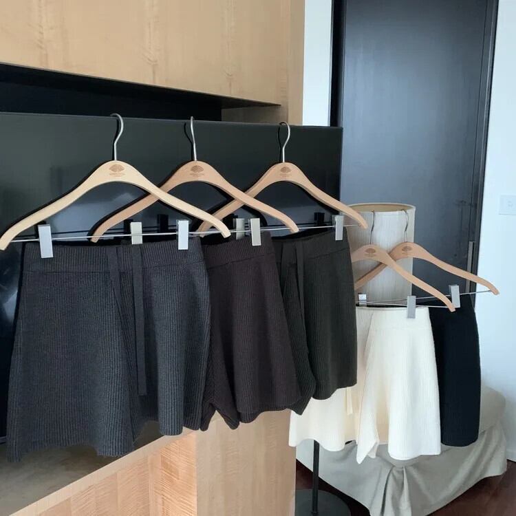 巾着ニットショーツ秋ストレッチウエスト A ラインワイドレッグパンツ黒底 Pantalones Cortos De ブラック オータム 秋物 ブルマー Aライン ワイドパンツ