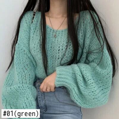 ニット秋アウトセーターランタンスリーブ O ネックニットプルオーバー冬ルーズセータートップス オータム 秋物 ウィンター 冬物 Oネック ソリッドカラー