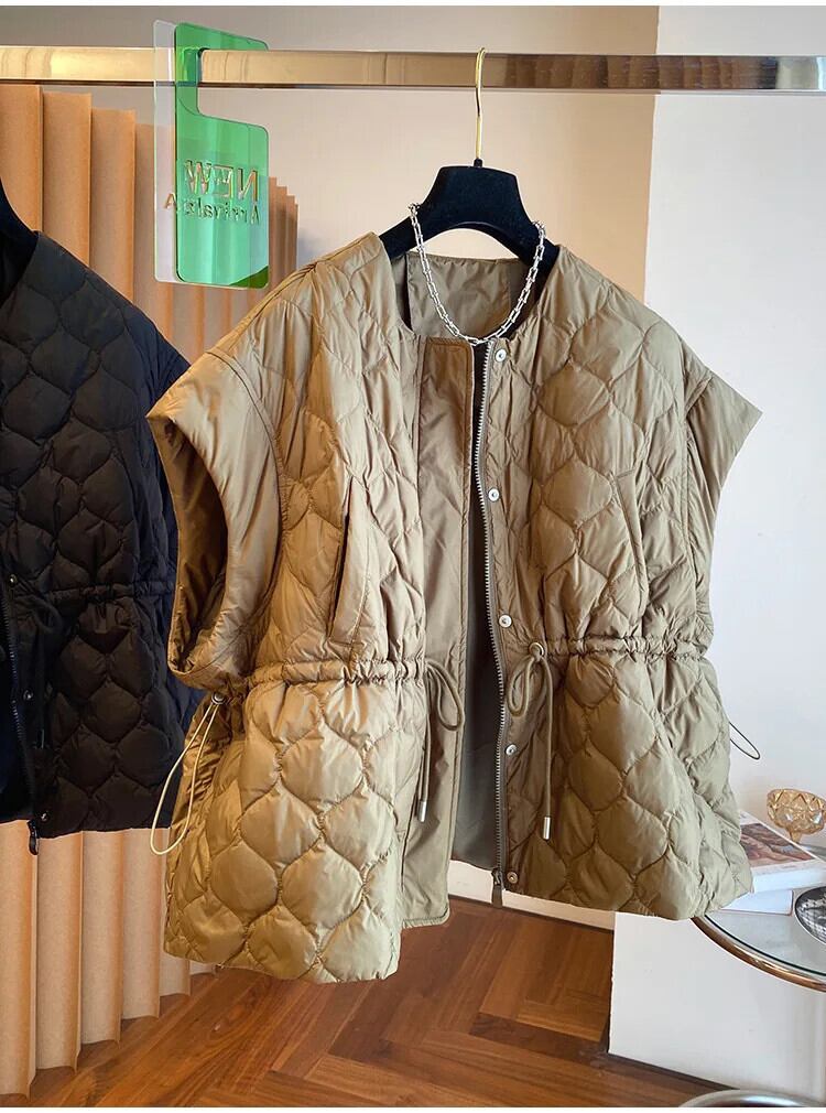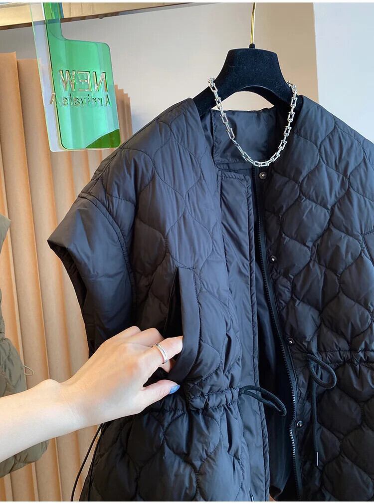 春中重量パファーベストキルティングベストスタンドカラー軽量ジップパッド入りコットンベスト黒パーカー ブラック スプリング 春物