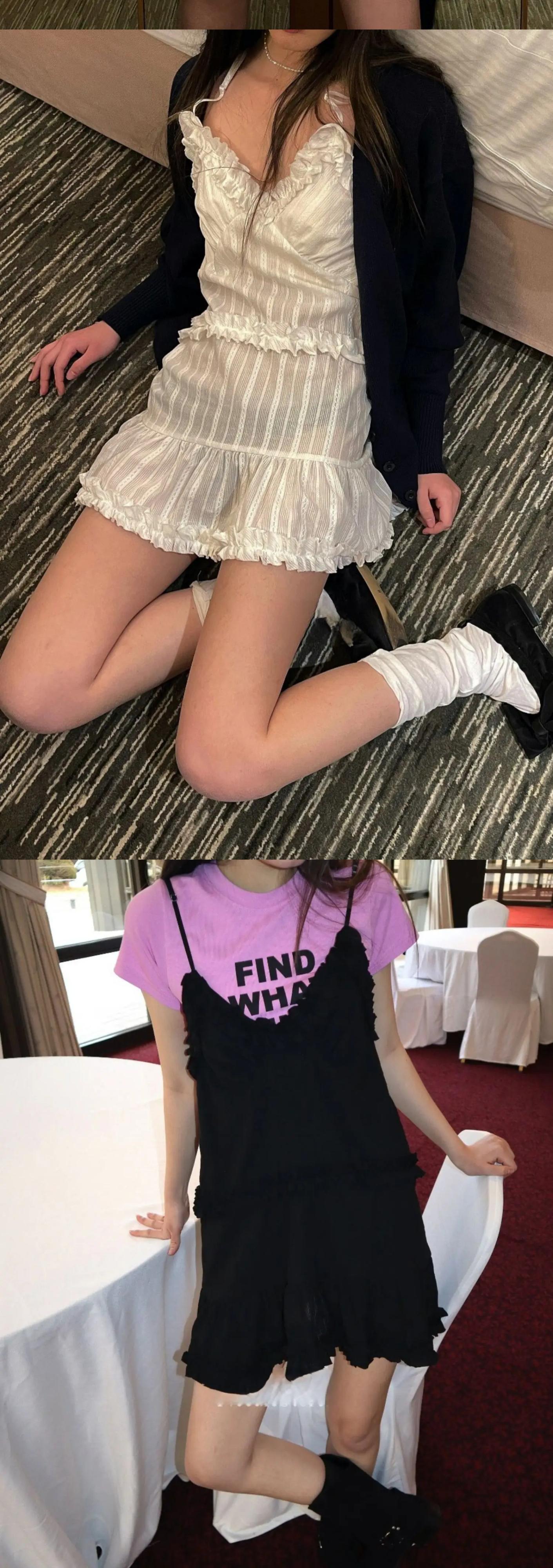 薄型レースアップソリッドミニドレススリップエッジ真菌レースサスペンダードレス甘いかわいい Vestidos 大人ガーリー スウィート キュート カジュアル ソリッドカラー