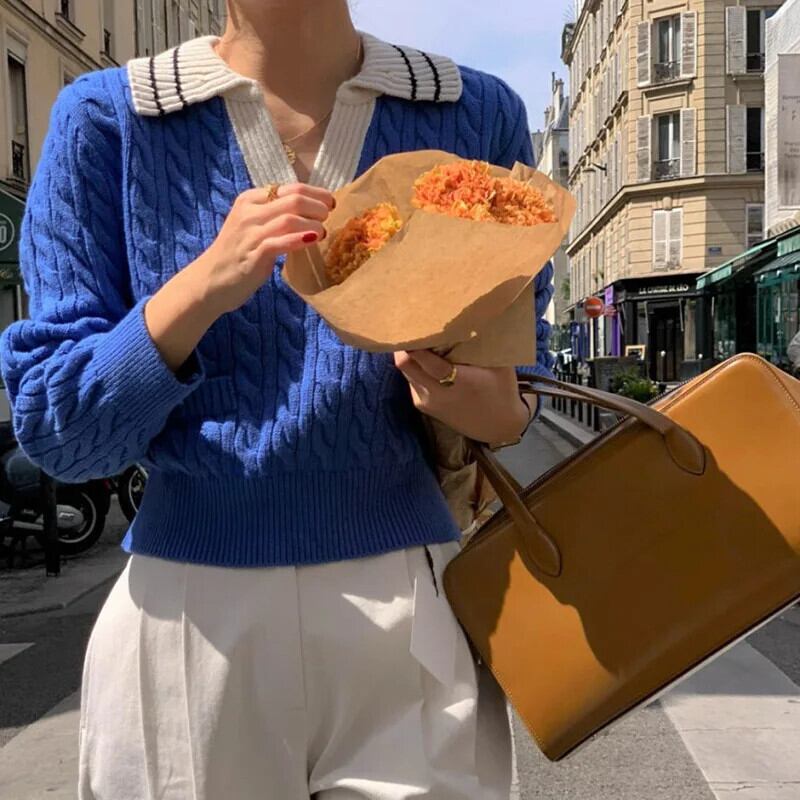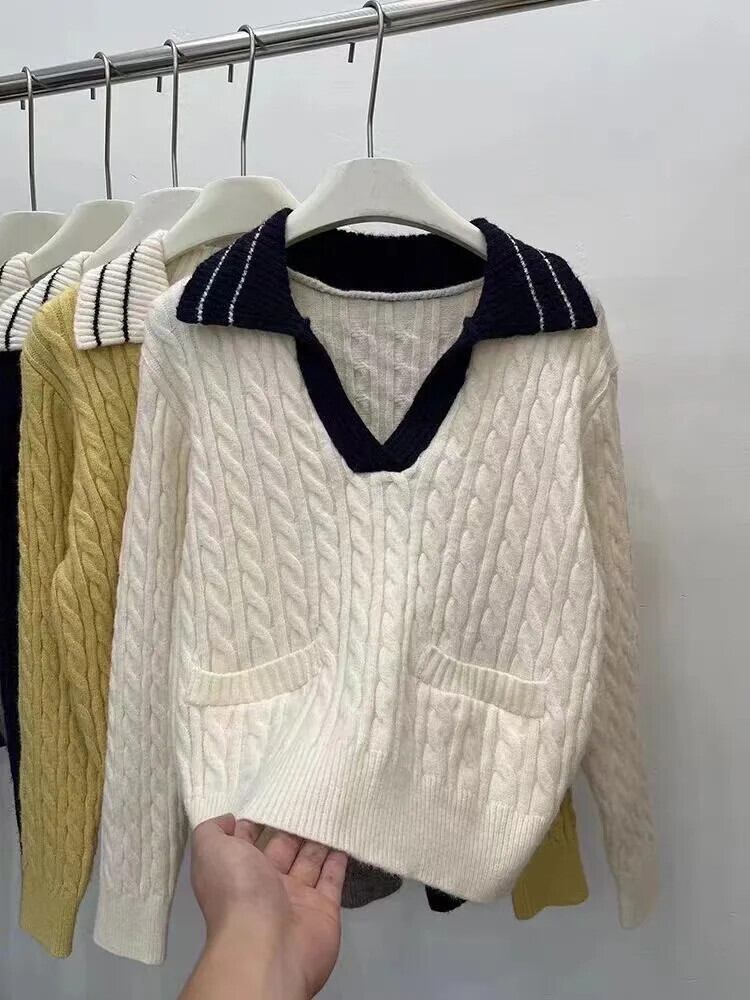 襟プルオーバーニットカラーマッチングニッチウエスタンジャンパーセーターY2kトップグレーツイスト