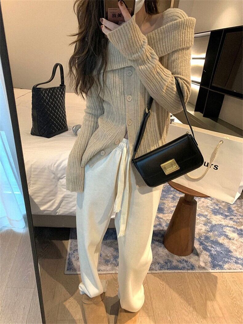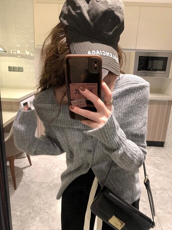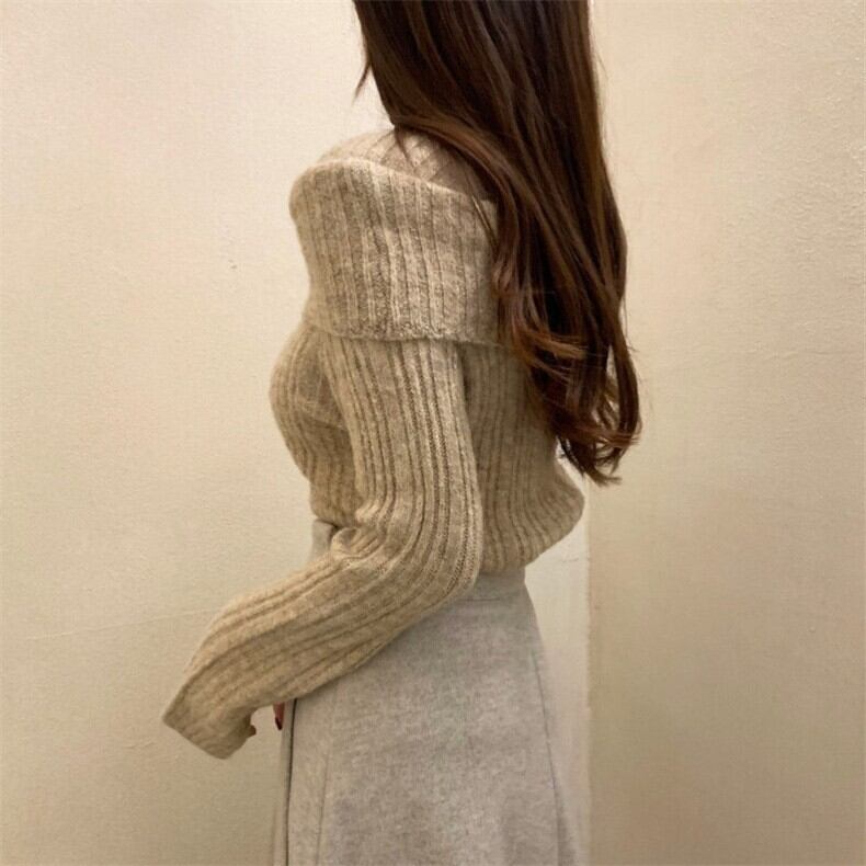 美学グランジ Y2k プルオーバーオフショルダーセクシースリムボトムセータージャージグレーセーターニットトップス