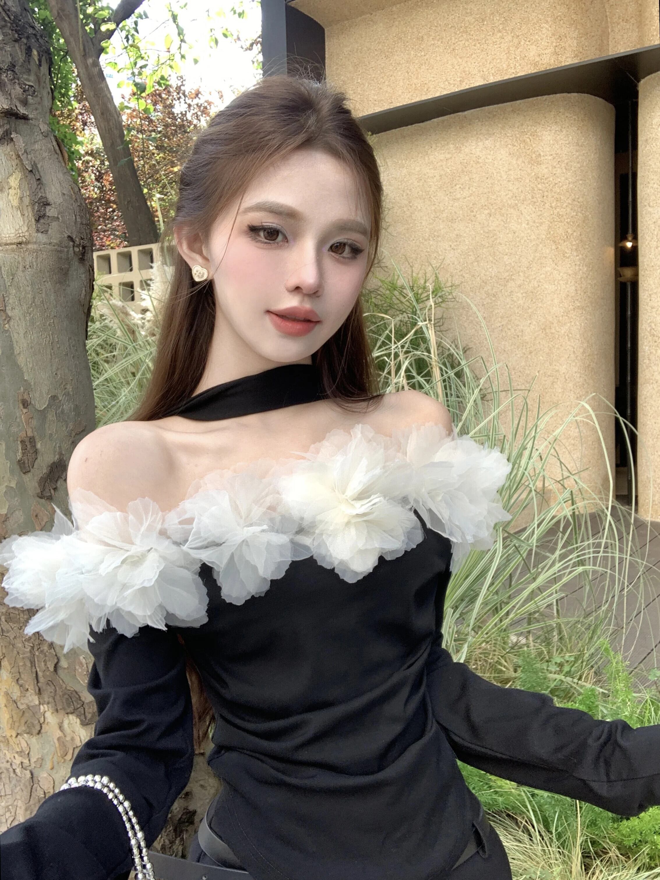 スリムグラフィック Tシャツセクシークロップトップス妖精グランジ黒 Tシャツオフショルダーセーターニットボトムホルターセーター ブラック