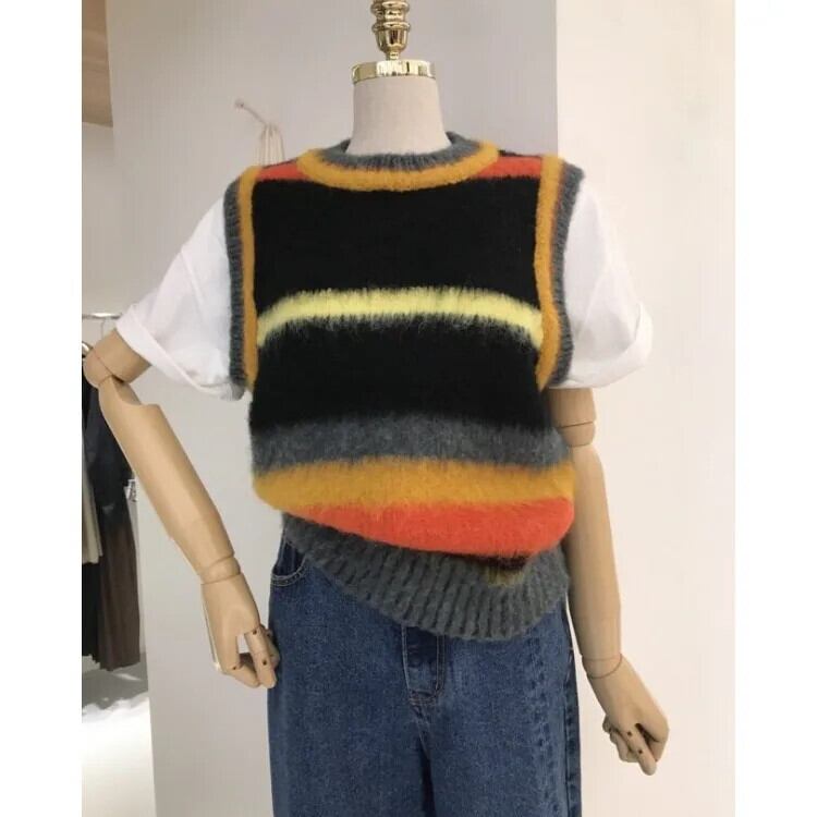 ストライプぬいぐるみセーターベストパーソナライズされたトップスカラーマッチングベスト秋 Chalecos チョッキ オータム 秋物
