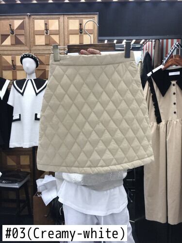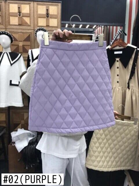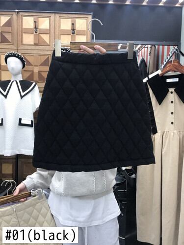 キルティングコットンパッド入りルーズウエストダイヤモンドチェック柄バットラップ A ラインスカートスタイル Faldas Moda 黒ミニスカート ブラック Aライン