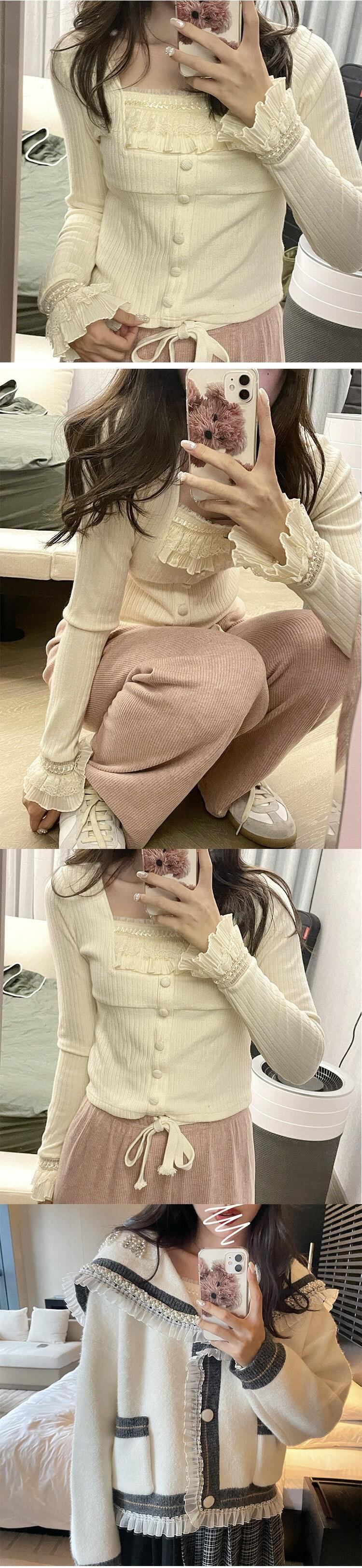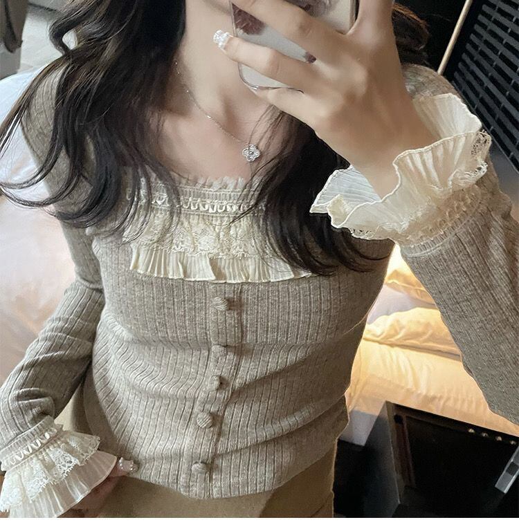 Fairycore 美学グランジ Y2k レースシャツニット上下 Tシャツスリムレトログラフィック Tシャツ秋シャツ オータム 秋物