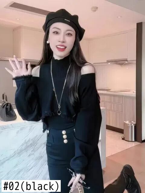 セーターテルオフショルダーセーター Y2k ハーフネック不規則生き抜くトップスニットセーター