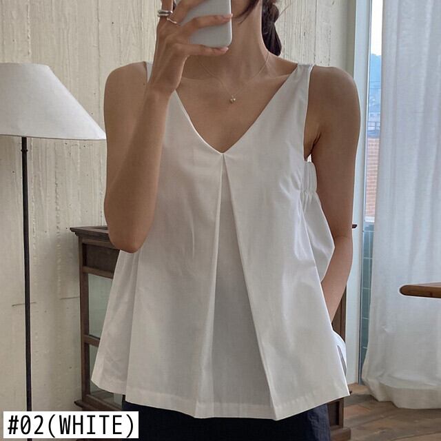 V ネック タンク キャミソール ドゥ モーダ ルーズ タンク トップ プリーツ ルーズ ソリッド ノースリーブ ブラウス ホワイト シャツ シャツ ソリッドカラー