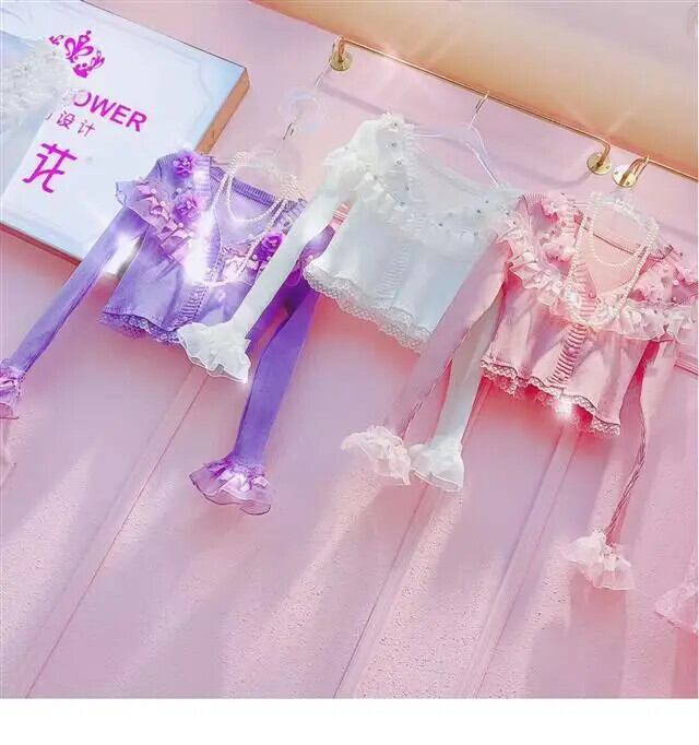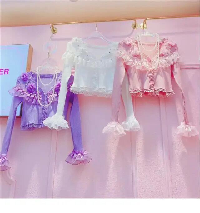 ビーズ レース フリル V ネック ピンク カーディガン シック フレア スリーブ ニット カーディガン セーター プル ニット コート セーター フレアスリーブ Vネック