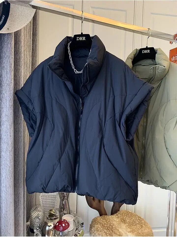 スタンドカラーベスト暖かい黒ベスト Chalecos ダウンコートトップ Roupas 綿パンジップパーカージャケット ブラック コットン