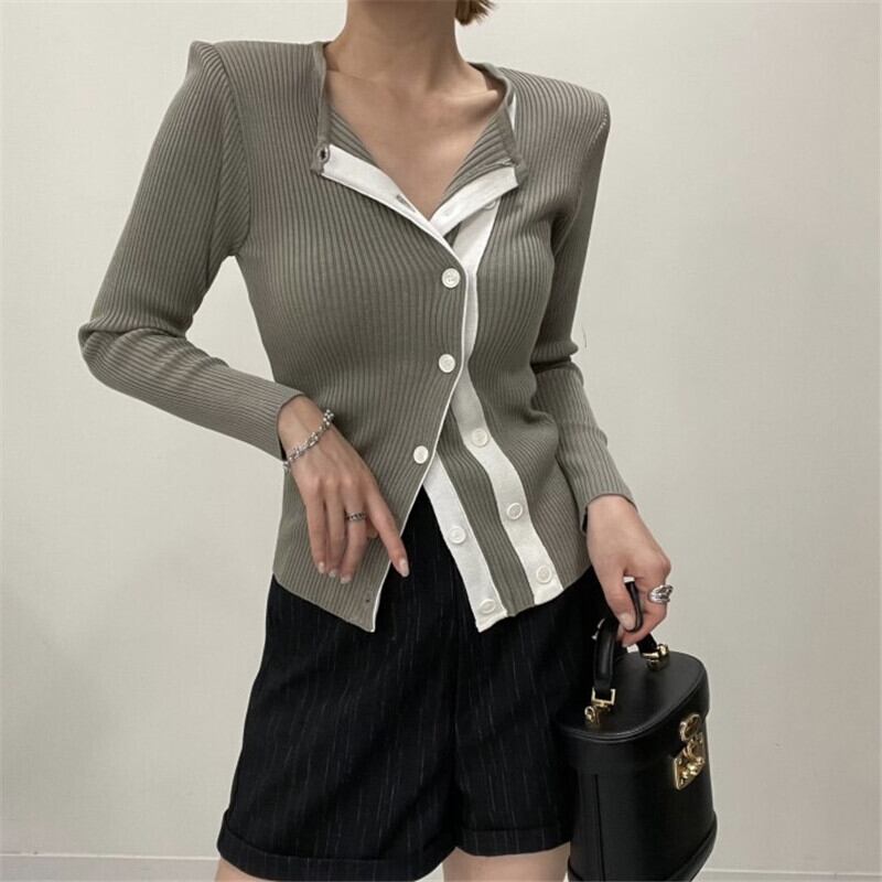 クロップドカーディガン不規則ハーフネック Y2k コントラスト黒ニットカーディガントップセーターコートセーター ブラック
