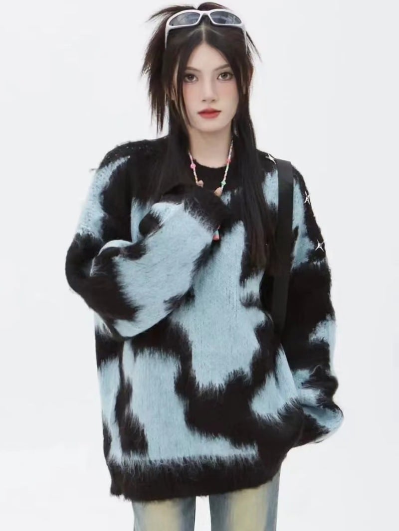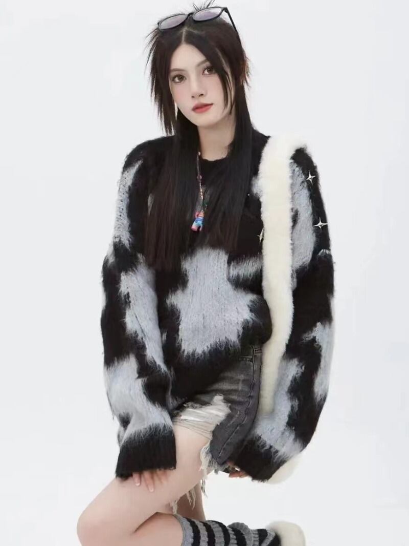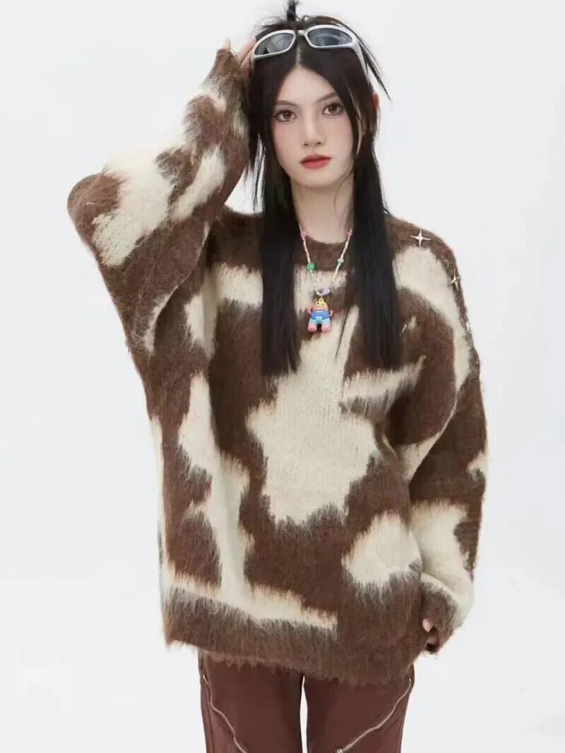 プルオーバー絞り染めニット セーター ミンク カシミア Y2k ジャンパー セーター美学グランジ トップ プル ピンク