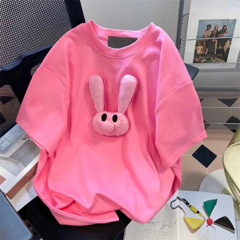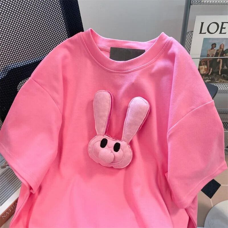 半袖 Tシャツかわいい 3D ウサギグラフィック Tシャツクロップトップグランジ原宿美的 Ropa Tシャツ ショート ハーフスリーブ 大人ガーリー スウィート キュート カジュアル