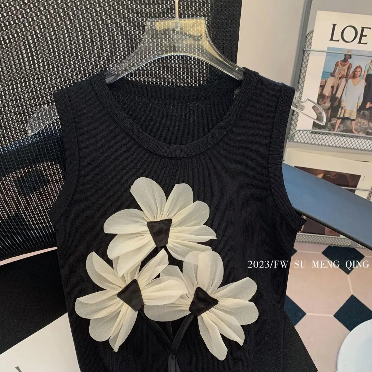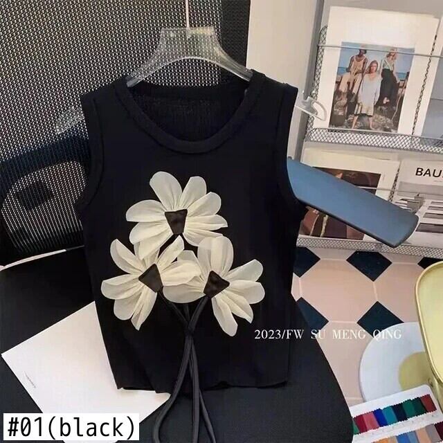 タンクノースリーブキャミソール巾着 3D 花ベストクロップトップスグランジ Camisetas グラフィック Tシャツ黒 Tシャツ Y2k ブラック 花柄