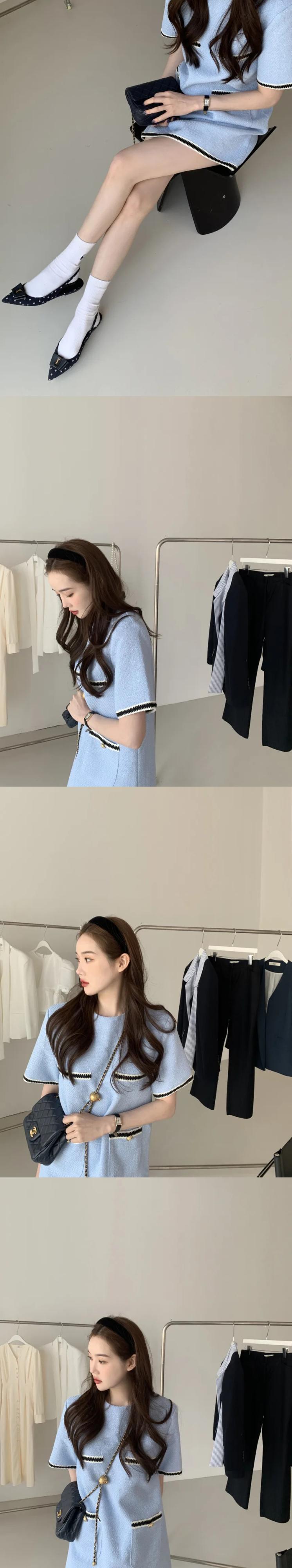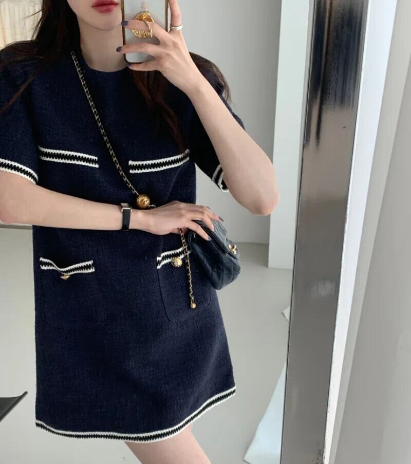 半袖 Vestidos De Verano ルーズコントラストラウンドネックツイードドレスミニ厚手レトロシックドレス ショート ハーフスリーブ Oネック