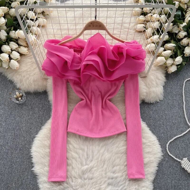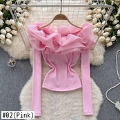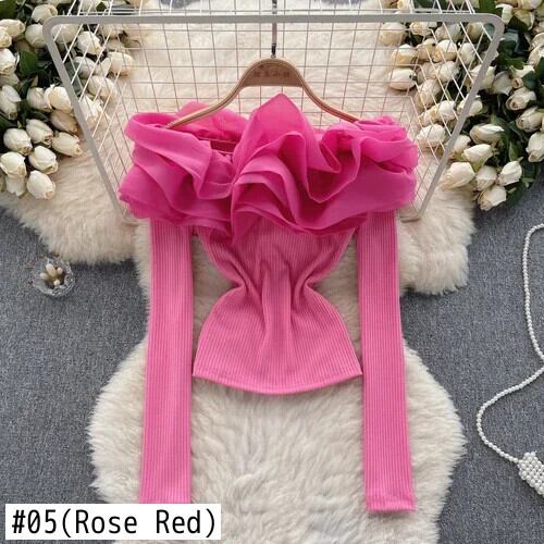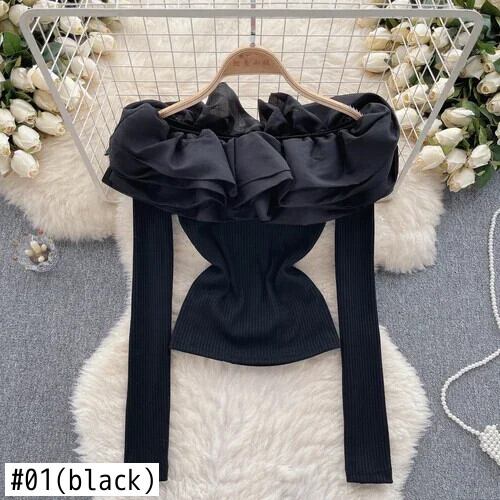 ニットブラウススラッシュネック長袖スキニーシャツ秋トップス出荷作物セーター ロング オータム 秋物