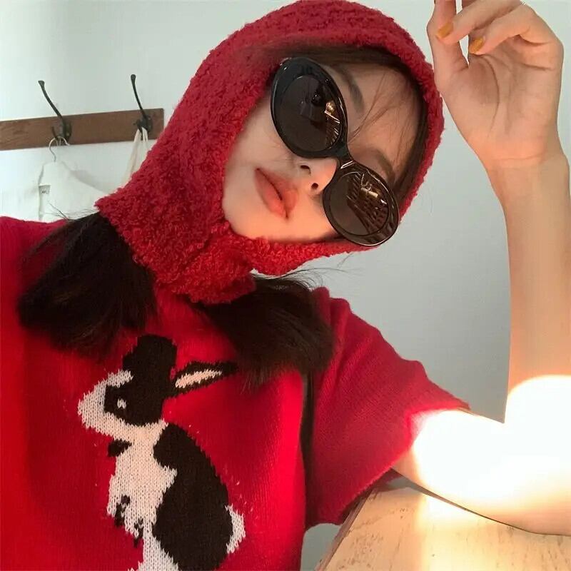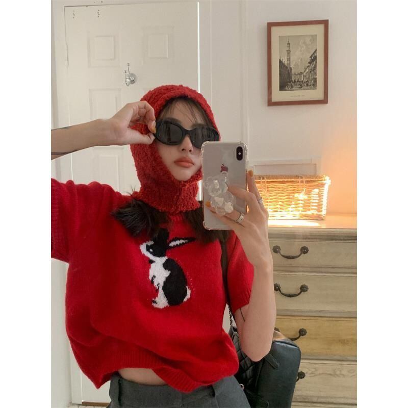 ウサギ夏ニット Tシャツ O ネック半袖セーターシャツプルオーバー緩い甘いグランジトップ ショート ハーフスリーブ 大人ガーリー スウィート キュート カジュアル サマー 夏物 Oネック