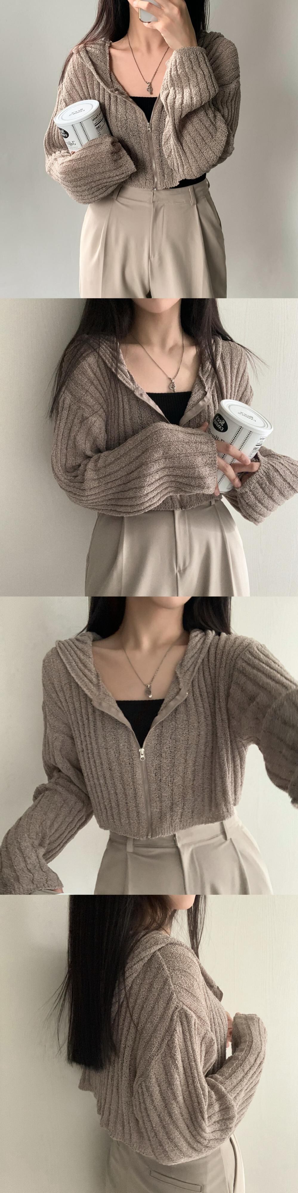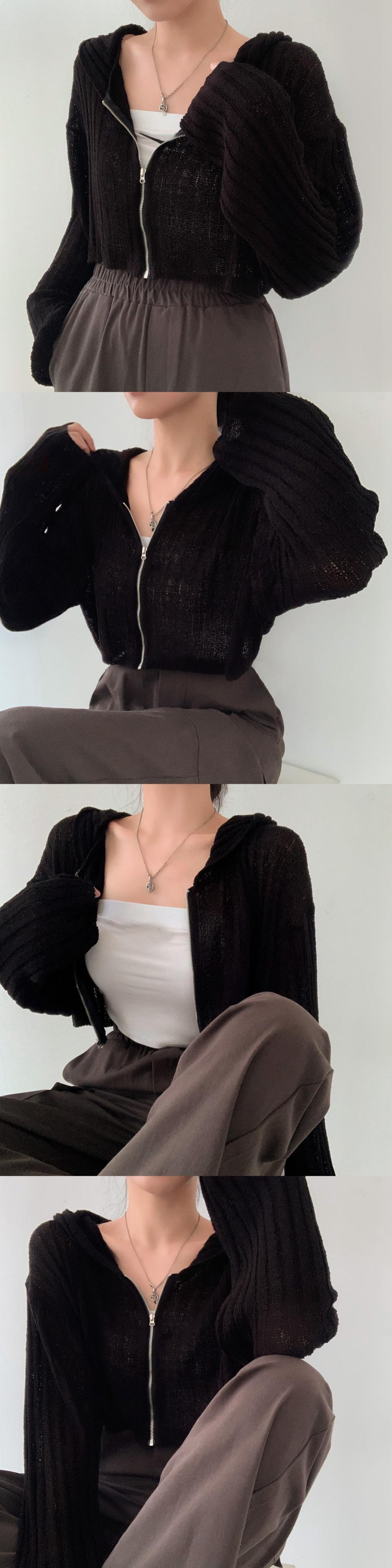 ショートスタイルソリッドカラー長袖ジップフード付きセーター怠惰ニット丈カーディガントップ Y2k スリム黒ニット ロング ブラック